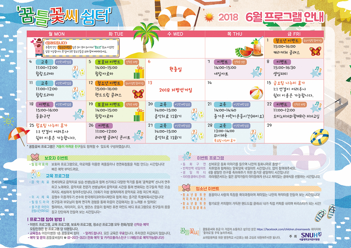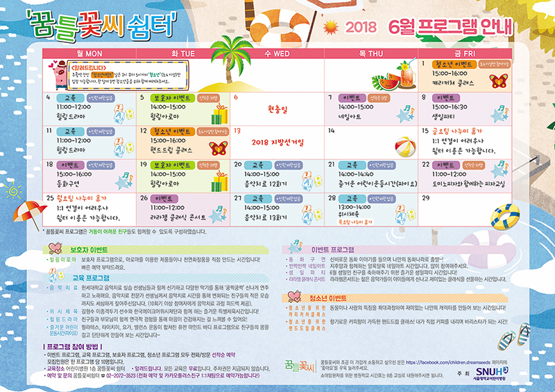 2018년 6월 꿈틀꽃씨 쉼터 프로그램 안내