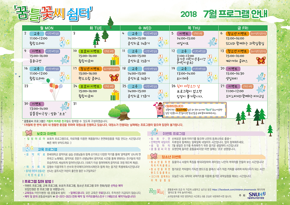 2018년 7월 꿈틀꽃씨 쉼터 프로그램 안내