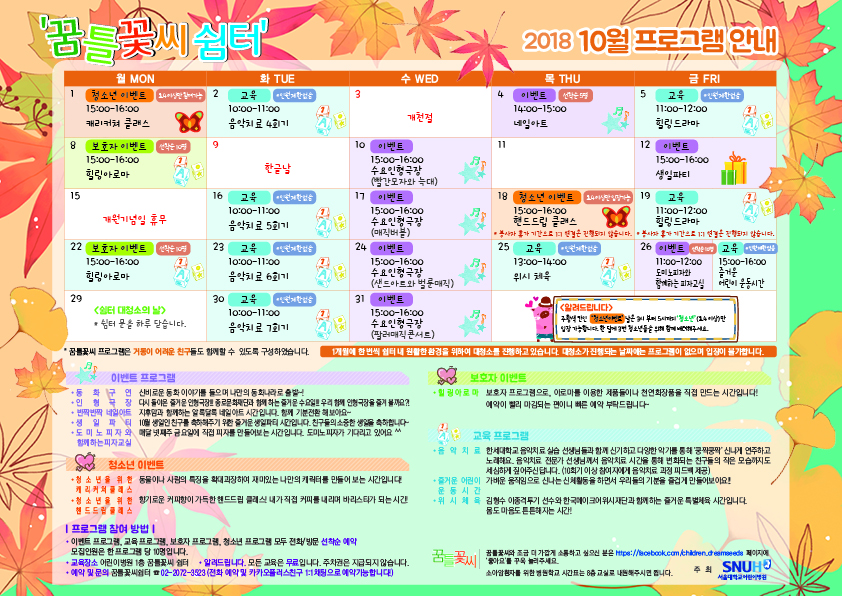 꿈틀꽃씨쉼터 10월 프로그램 안내