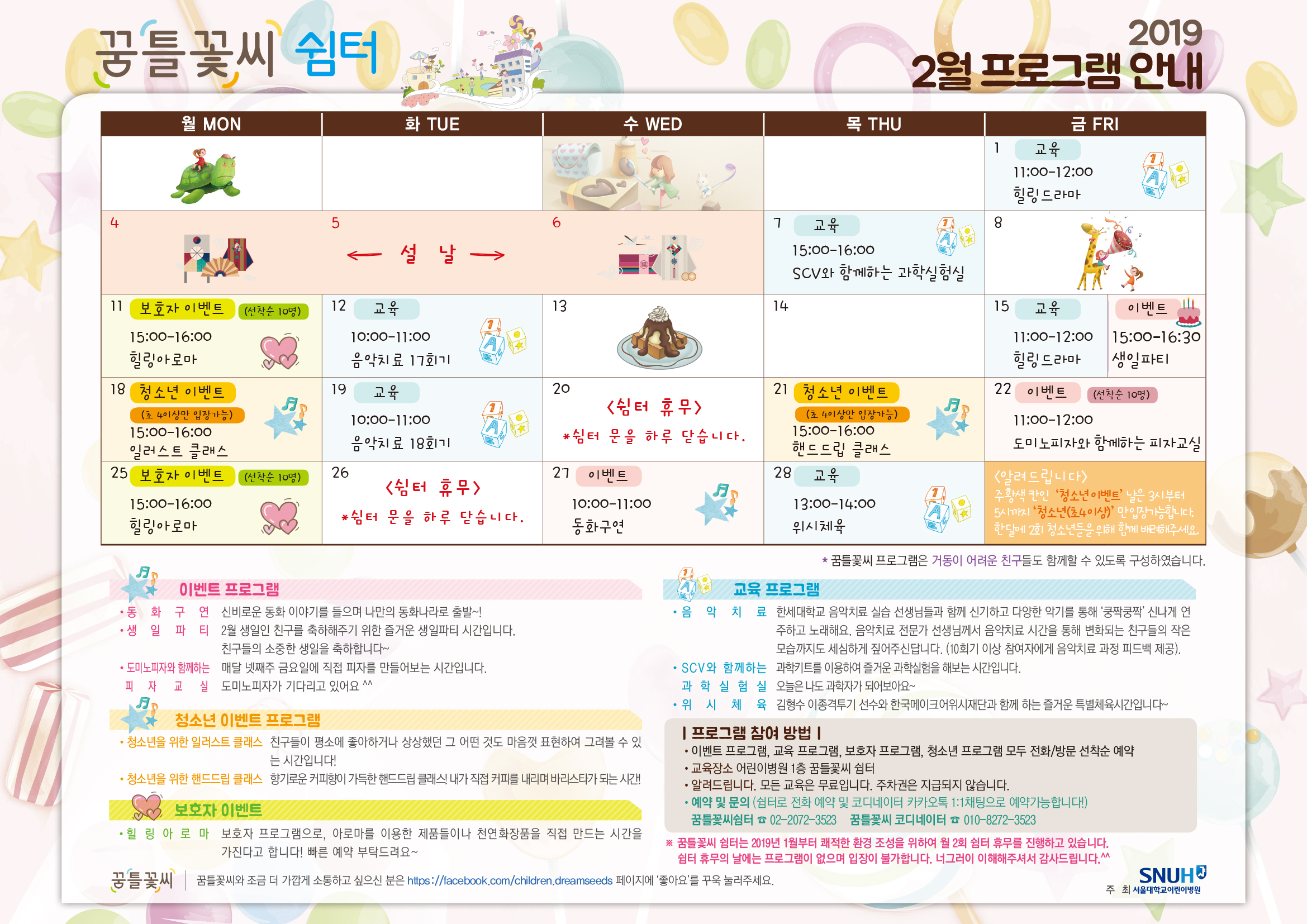 꿈틀꽃씨쉼터 2월 프로그램 안내