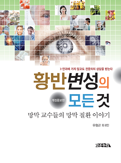 「황반변성의 모든것」은 황반변성 환자와 가족이 궁금해 하는 점과 알면 도움이 되는 내용을 전달하기 위해 만들어졌습니다. 이번 개정판에서는 초판에 없던 ‘자주 하는 질문(FAQ)’을 삽화와 함께 구성해 누구나 쉽게 황반변성에서 가장 흔히 받는 질문들의 답을 저자들이 함께 제시하였습니다. 본문 1부 ‘눈과 시력’에서는 눈이라는 시각기관을 통해 우리가 어떻게 사물을 볼 수 있는지, 황반변성이 되면 왜 영구적인 실명이 되는지 기술하였습니다. 2부 ‘황반변성의 발생과 진행’에서는 황반변성에 대한 임상 소견과 진단 방법, 맥락막 신생혈관 합병증 등에 대하여, 3부 ‘노안과 망막 질환의 원인과 대책’에서는 노안과 노인성 질환의 차이와 나이가 들어 시력이 감소할 때 왜 황반변성과 같은 안과 질환부터 확인 해야 하는지 설명하였습니다. 4부 ‘위험인자와 예방법’에서는 누가 더 황반변성에 잘 걸리고 예방은 어떻게 하는지, 5부와 6부 ‘황반변성의 치료와 관리’, ‘습성황반변성의 치료’에서는 황반변성의 속도를 늦추는 망막보조제, 맥락막신생혈관 합병증에 대한 안구내 주사와 광역학치료 등에 대해서 최근의 연구성과를 중심으로 기술하였습니다. 마지막으로 ‘황반변성에 좋은 음식’에서는 우리 생활에서 황반변성을 예방하는 가장 좋은 방법 중 하나인 음식 조절에 대하여, 망막에 좋은 음식 과 조리방법 등을 소개하였습니다.