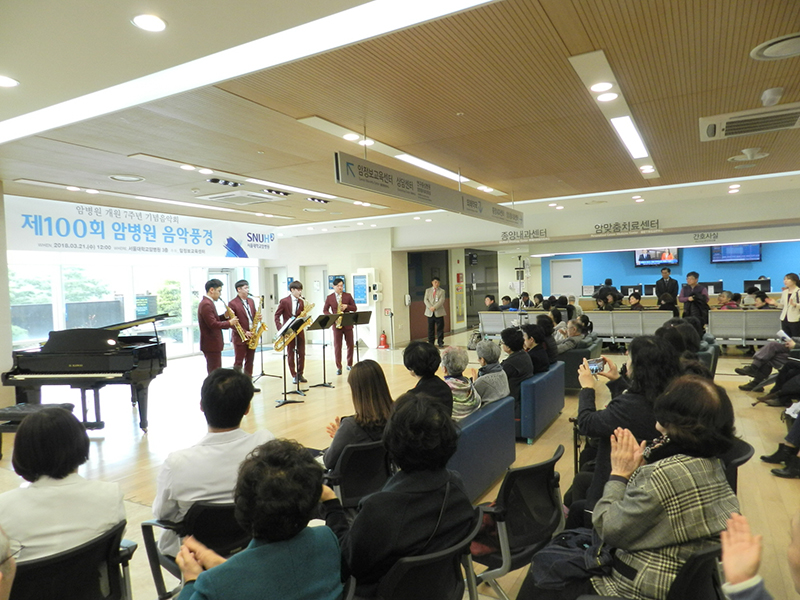 서울대암병원은 21일 로비에서 ‘개원 7주년 및 음악풍경 100회’ 기념 음악회를 개최했다.