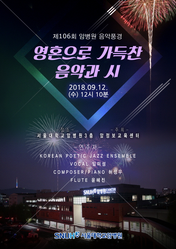 [행사알림] 제106회 암병원 음악풍경 개최(영혼으로 가득찬 음악과 시) 9/12(수) 12:10