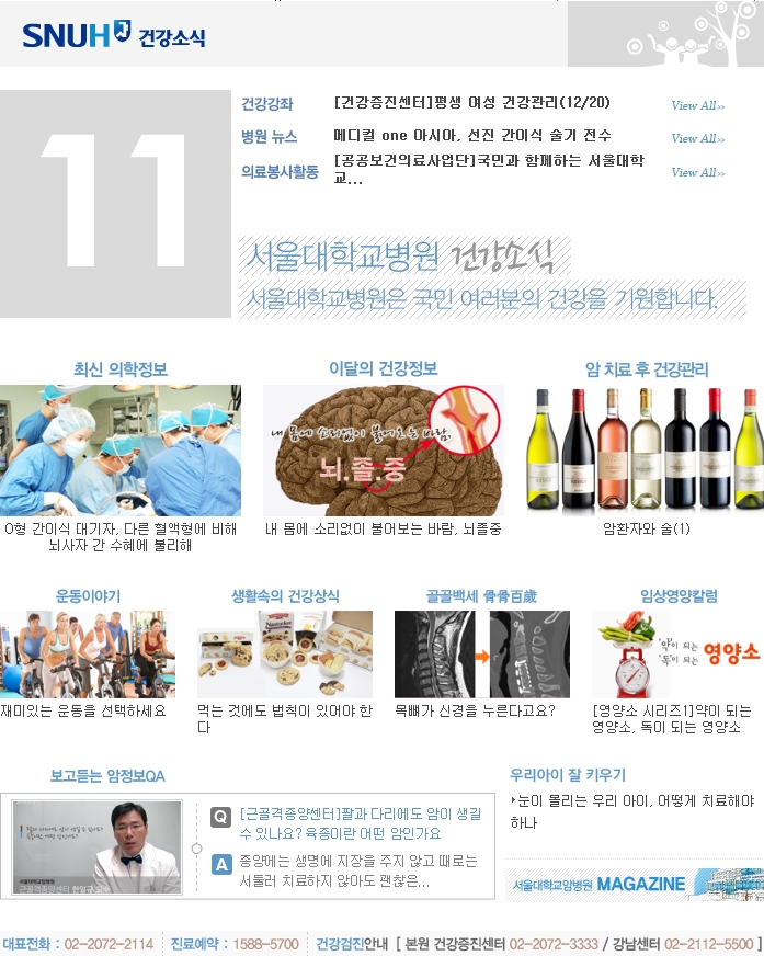병원에 대한 전반적인 문의는 전화'1588-5700' (예약문의: 1번, 기타: 2번)로,