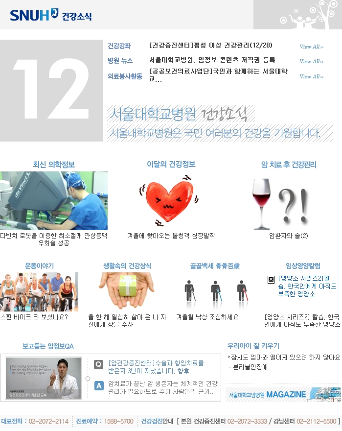 병원에 대한 전반적인 문의는 전화'1588-5700' (예약문의: 1번, 기타: 2번)로,