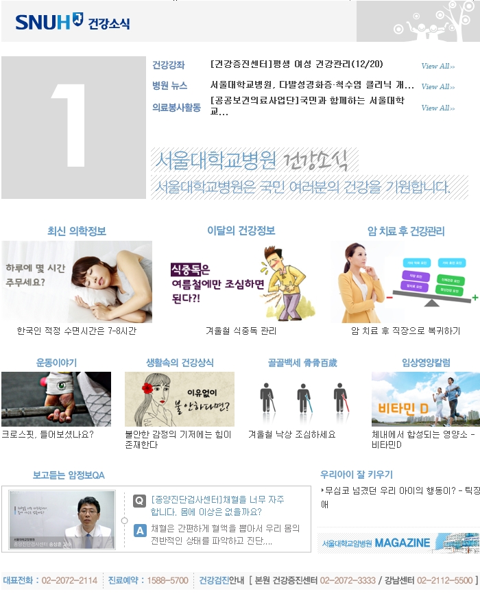 병원에 대한 전반적인 문의는 전화'1588-5700' (예약문의: 1번, 기타: 2번)로,