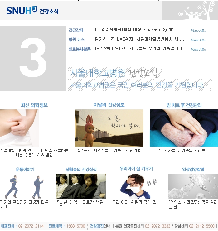 병원에 대한 전반적인 문의는 전화'1588-5700' (예약문의: 1번, 기타: 2번)로,