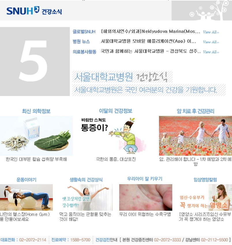 병원에 대한 전반적인 문의는 전화'1588-5700' (예약문의: 1번, 기타: 2번)로,