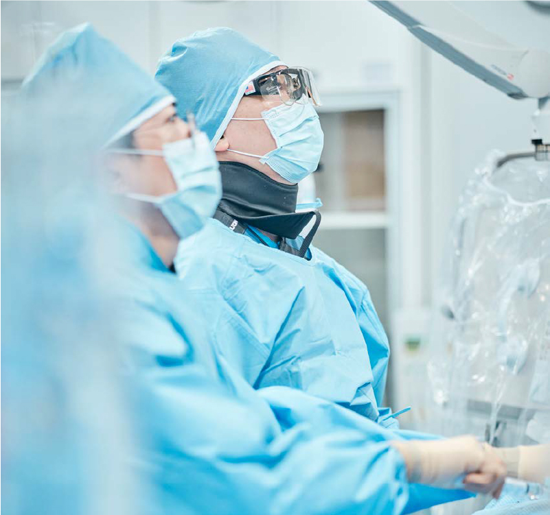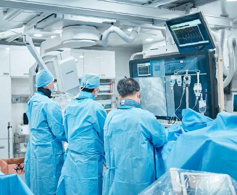 A. 그럼요. 저 혼자 한다고 생각해본 적은없습니다. 여러 교수님, 전임의, 간호사, 방사선사, 임상병리사 선생님들이 역할을 맡으시고, 복잡한 케이스일 때는 선배 교수님들께 도움을 요청합니다. 심장 혈관을 직접 다루는 시술이다 보니 정말 사소한 차이 하나로 뜻밖의 상황이 생길 수 있거든요. 그런 순간을 직접 눈앞에서 보기 때문에 더욱 경계하게 됩니다. 100번의 성공보다 한 번의 실수가 훨씬 더 크게 남을 테니까요. 그러니 절대 사고가 나면 안 된다는 마음으로 팀 전체가 협력하는 게 당연합니다.