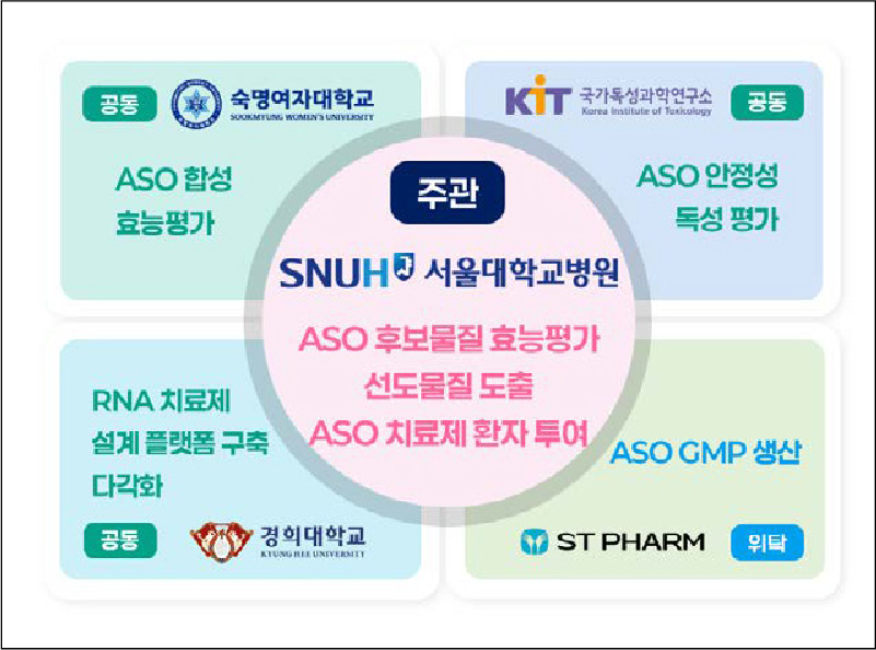 2025년도 한국형 ARPA-H 프로젝트 연구과제 주관기관으로 선정돼 ‘소아 희귀질환 맞춤형 혁신치료 플랫폼 개발과 N-of-1 임상시험’을 추진한다. 이는 보건복지부, 한국보건산업진흥원, K-헬스미래추진단 지원 R&D 사업으로, 4.5년 동안 최대 147억 5천만 원이 지원된다. 병원은 컨소시엄을 구성하고 ASO(안티센스 올리고뉴클레오타이드) 기술을 활용해 희귀질환 환자를 위한 맞춤형 치료제를 설계·생산한다. 본 연구는 소아 중증 희귀질환 환자를 위한 맞춤형 유전자 치료제 개발 및 임상시험을 통해 새로운 희귀질환 치료 플랫폼을 구축한다는 점에서 의미가 크다.