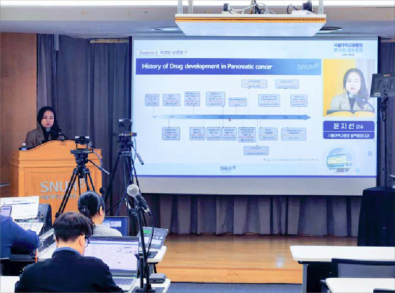 11월 9일 서성환홀에서 ‘뇌종양과 췌장암’을 주제로 제14회 암병원 연수강좌를 개최했다. ‘일차의료에서의 뇌종양 접근법’, ‘췌장암 바로 알기’를 주제로 세션을 나눠, 관련 의료진들이 강연을 진행해, 중증 암분야의 최신 지견과 협력방안을 심도있게 논의하는 학술 교류의 장이 됐다. 온라인을 통해 협력 병의원 의료진 및 관계자 등 약 270명이 참석했다. 서울대학교암병원은 앞으로도 지속적으로 연수강좌를 개최하여 협력 병의원들과의 관계를 공고히 하고, 나아가 환자중심의 유기적인 진료협력체계를 확립하기 위한 발판을 마련해 나갈 계획이다.