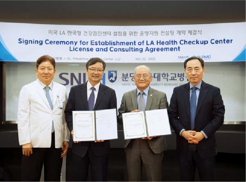 2026년 미국 로스앤젤레스에 한국형 건강검진센터가 들어설 예정인 가운데, 센터 설립 자문을 전담한 분당서울대학교병원이 운영지원 자문도 이어서 맡는다. 분당서울대학교병원은 10월 22일 미국 SL건강검진센터(SL Preventive Medical Center)와 LA 한국형 건강검진센터 운영지원 자문계약을 체결했다. 이는 지난해 4월 SL재단(SL Christian Foundation)과 체결한 설립 자문계약의 후속계약으로, SL재단이 LA에 개원하는 건강검진센터의 ▶개원 준비 ▶센터운영 ▶진료연계 ▶ 직원교육 ▶건강검진프로그램 개발 등에 대한 전방위적 자문을 제공하게 된다.
