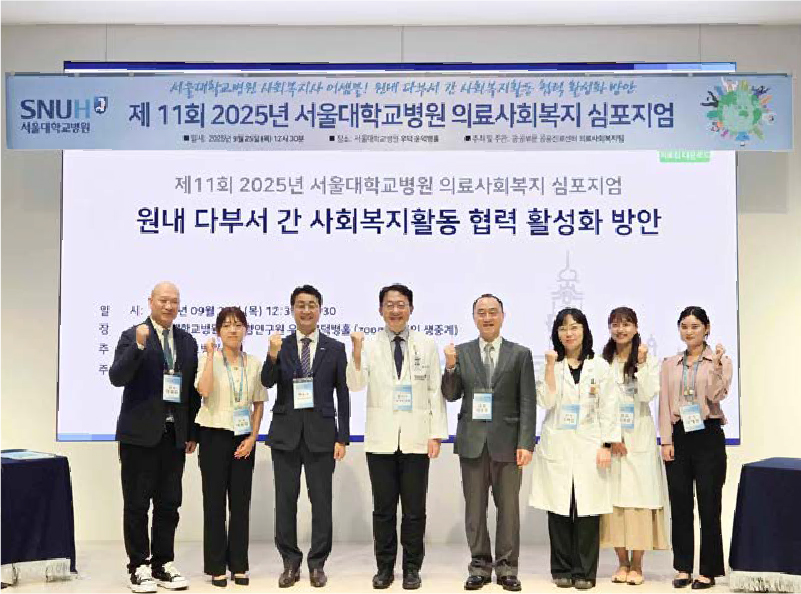 9월 25일 의생명연구원 윤덕병홀에서 ‘제11회 2025년 의료사회복지 심포지엄’을 개최했다. 이 심포지엄은 다양한 부서에서 활동하는 사회복지사들의 역할을 공유하고 협력 체계를 강화해 보다 효과적인 사회복지 서비스 제공 방안을 모색하기 위해 마련됐다. 의료기관 내·임상윤리지원· 성인 완화의료·소아청소년 완화의료·단기의료돌봄센터·아동학대 사례관리 등에서의 구체적 활동과 전문성을 제시했으며, ‘다양한 부서에 소속된 사회복지사 간 협력 활성화 방안’에 대해 패널 토의도 진행했다. 심포지엄에는 의사, 간호사, 의료· 정신건강사회복지사, 사회복지학과 전공생 등 약 230명이 온·오프라인으로 참석해 성황을 이뤘다.