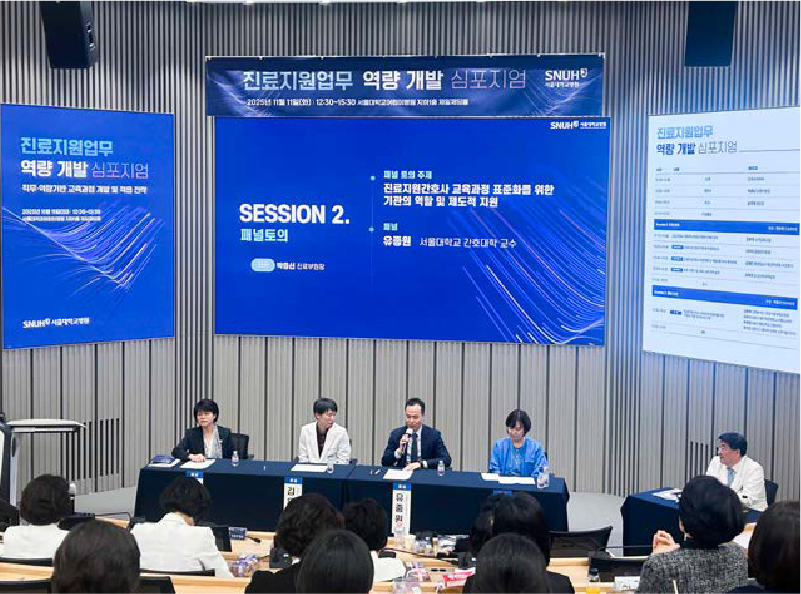 11월 11일 제일제당홀에서 ‘진료지원업무 역량개발 심포지엄’이 열렸다. 진료지원간호사의 실제 업무를 정량적으로 분석해 핵심 ‘위임가능전문직무(Entrustable Professional Activities, EPA)’ 12개와 단계별 교육·수련체계를 공개하는 자리였다. 이번 연구는 직무분석을 토대로 EPA 기반 단계별 교육·수련체계를 국내에서 처음으로 제시한 것으로, 의료현장에서 지속적으로 제기돼 온 교육 편차와 역할 모호성 문제를 해결할 근거를 확보했다는 점에서 의미가 크다. 서울대학교병원은 2025년 전략연구과제로 ‘진료지원간호사 직무·역량 기반 교육과정 개발 TF’를 추진, 이 같은 결과를 도출했다.