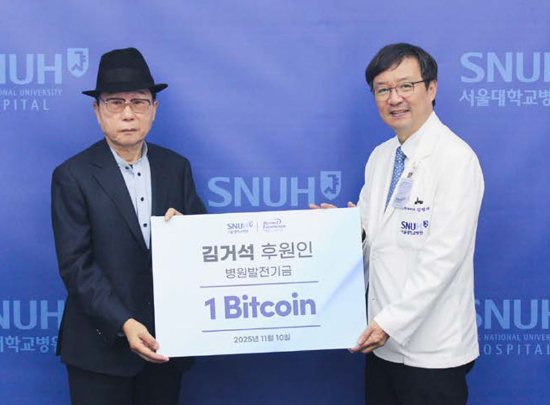 김거석 후원인이 11월 11일, 비트코인 1개(약 1억 5천 7백만 원 상당)를 병원발전기금으로 기부했다. 서울대학교병원이 처음으로 접수한 디지털자산 형태의 기부로, 새로운 기부 문화를 여는 계기가 됐다. 이번 기부를 포함해 김거석 후원인의 기부금은 약 10억 5천만 원에 달했다. 11월 11일 열린 전달식에서 김거석 후원인은 “환자에게 헌신하는 의료진에게 감사드린다. 앞으로도 서울대학교병원의 발전을 위해 지속적으로 후원할 것”이라고 말했다. 김영태 서울대학교병원장은 “뜻깊은 기부에 감사드린다”라며, “디지털자산 기부 체계를 마련해 교육·연구·진료·공공의료 전 분야에서 투명하고 선진화된 기부 운영이 이뤄지도록 하겠다”라고 말했다.