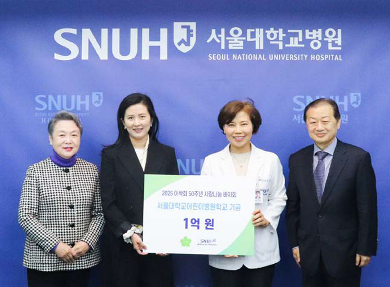 이화여대 부속유치원 학부모 봉사회 ‘이싹회’ 가 11월 13일 서울대학교병원 어린이병원학교에 1억 원을 전달했다. 1975년 결성된 이싹회는 50년간 국내외 취약계층을 지원해왔으며, 이번 후원금은 지난 9월 개최된 50주년 기념 바자회 수익금으로 조성됐다. 주소영 이싹회 회장은 “소아암, 백혈병 환아들을 위한 소중한 나눔을 진행할 수 있어 뜻깊다”라고 말했고 최은화 어린이병원장은 “건강장애 환아들의 학습권을 보장하고, 이들이 건강하게 회복해 사회 구성원으로 자라나도록 최선을 다하겠다” 라고 말했다.
